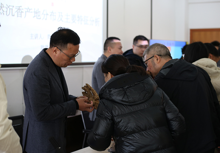 课堂上,讲师们围绕沉香核心产区展开系统讲解,清晰梳理惠安系、星洲系和国香系的地域分布,详解越南、老挝、马来西亚、印尼、文莱等主要产区的自然环境与结香特点。结合实物样本,对比不同产区天然沉香的油脂纹理、香气特点与质感差异,让学员们直观掌握各产区天然沉香的核心鉴别特征。