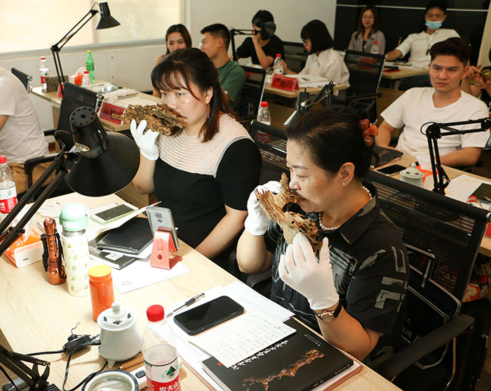 2021年7月24日下午,福建省沉香协会第二期沉香鉴别师暨香道技艺专项职业能力培训班第二个课程是《沉香鉴别技术与实践一》,本课程由福建省工艺名人、莆田市工艺美术大师、福建省沉香协会常务副会长、沉香鉴定专家委员会成员陈智敏老师与福建省工艺美术名人、莆田市工艺美术大师、福建省沉香协会副会长、沉香鉴定专家委员会成员郭震老师专题讲座。